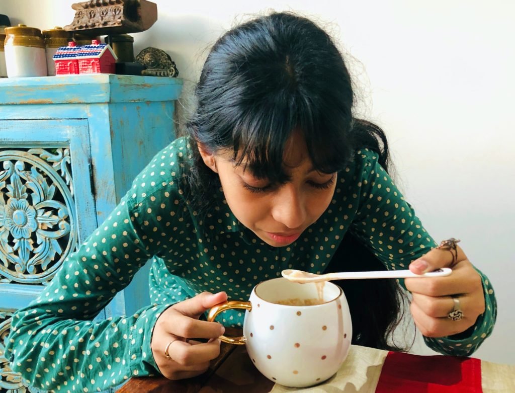 4.Cinnamon powder- 1 pinch (if you have cinnamon stick and not powder, break a small piece and add to the milk, which you must remove before pouring in the mug)