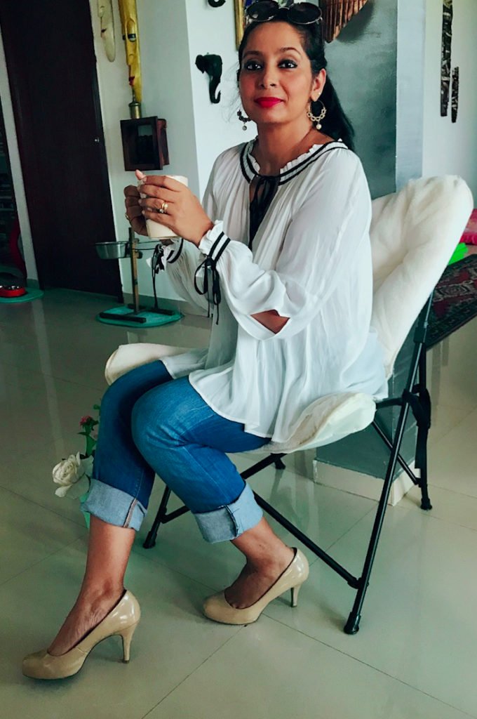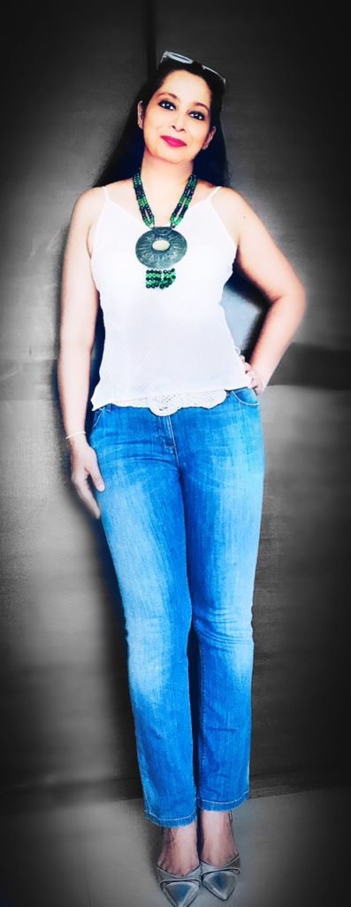 I paired my marks & Spencer jeans with a white cotton top from Bandhej.