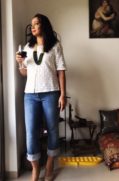 The green neckpiece is from a street vendor in Khan market, New Delhi.