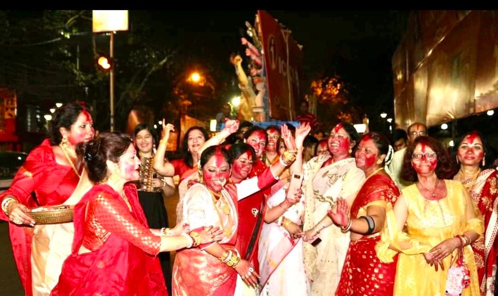 On the last day, married women smear Sindoor on each other. This is called ‘Sindoor Khela’ and signifies long and happy married life.