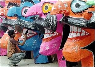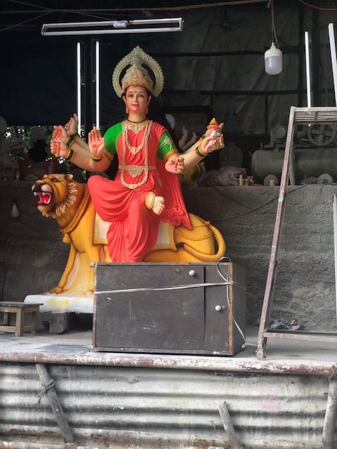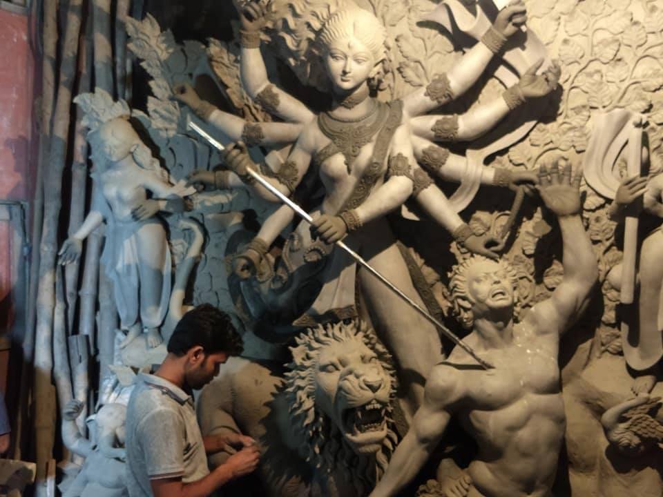 There are raftsmen making idols of Goddess Durga and Lord Rama everywhere.