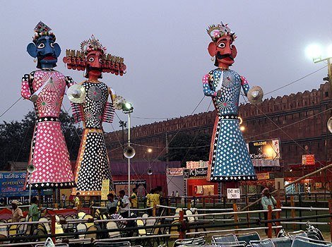 Dusshera celebrations is as full of colour in Delhi as the people of Delhi itself.  There are various Ramlila plays happening across the city, some done by local and upcoming actors and some organised by well-established theatre and drama companies. Ramlila Maidan is a very popular place for this. Giant Effigies of Ravana is burnt every year (Ravana Dahan) and hundreds of people come to watch this.